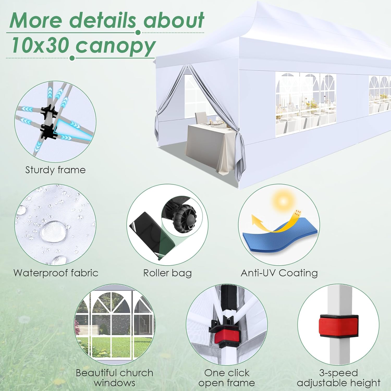 TOOLUCK 10x30 heightened pop up canopy tent with 8 sides