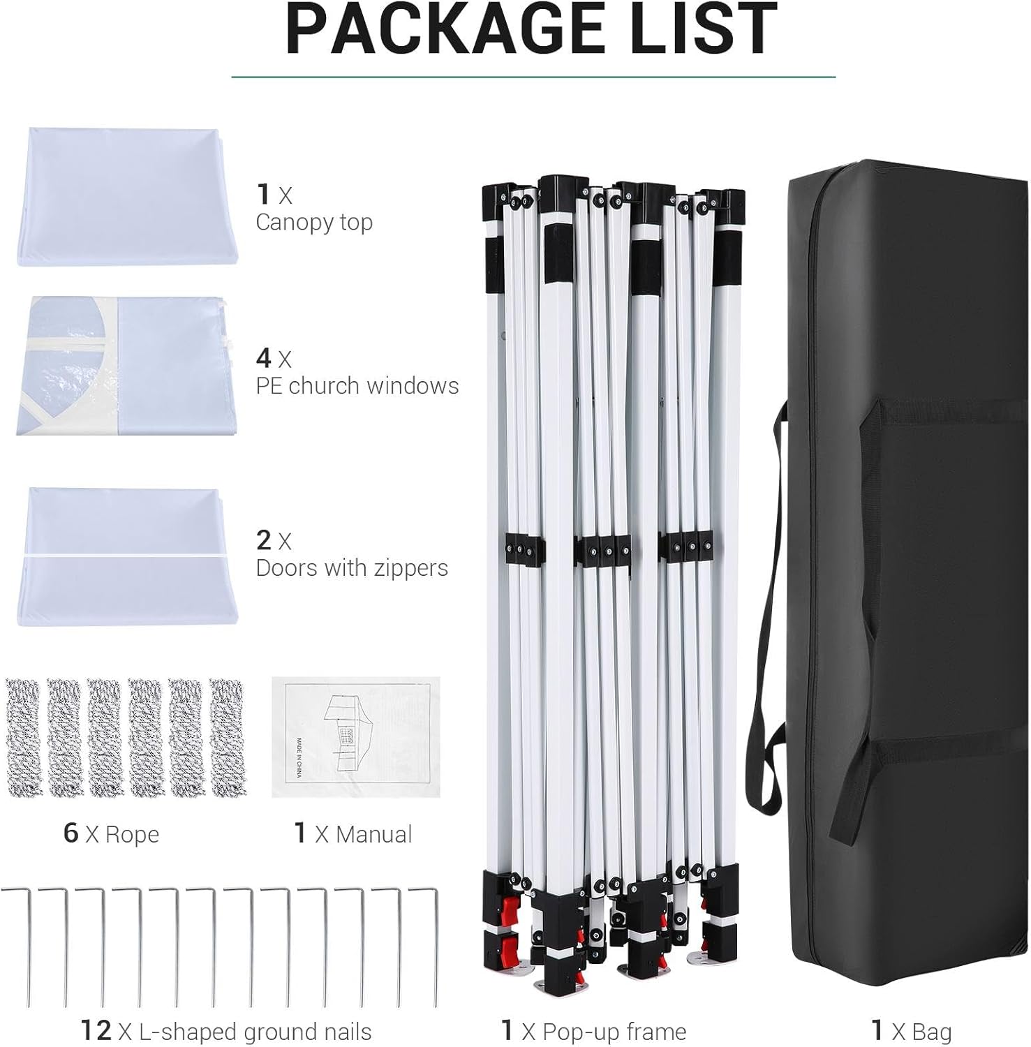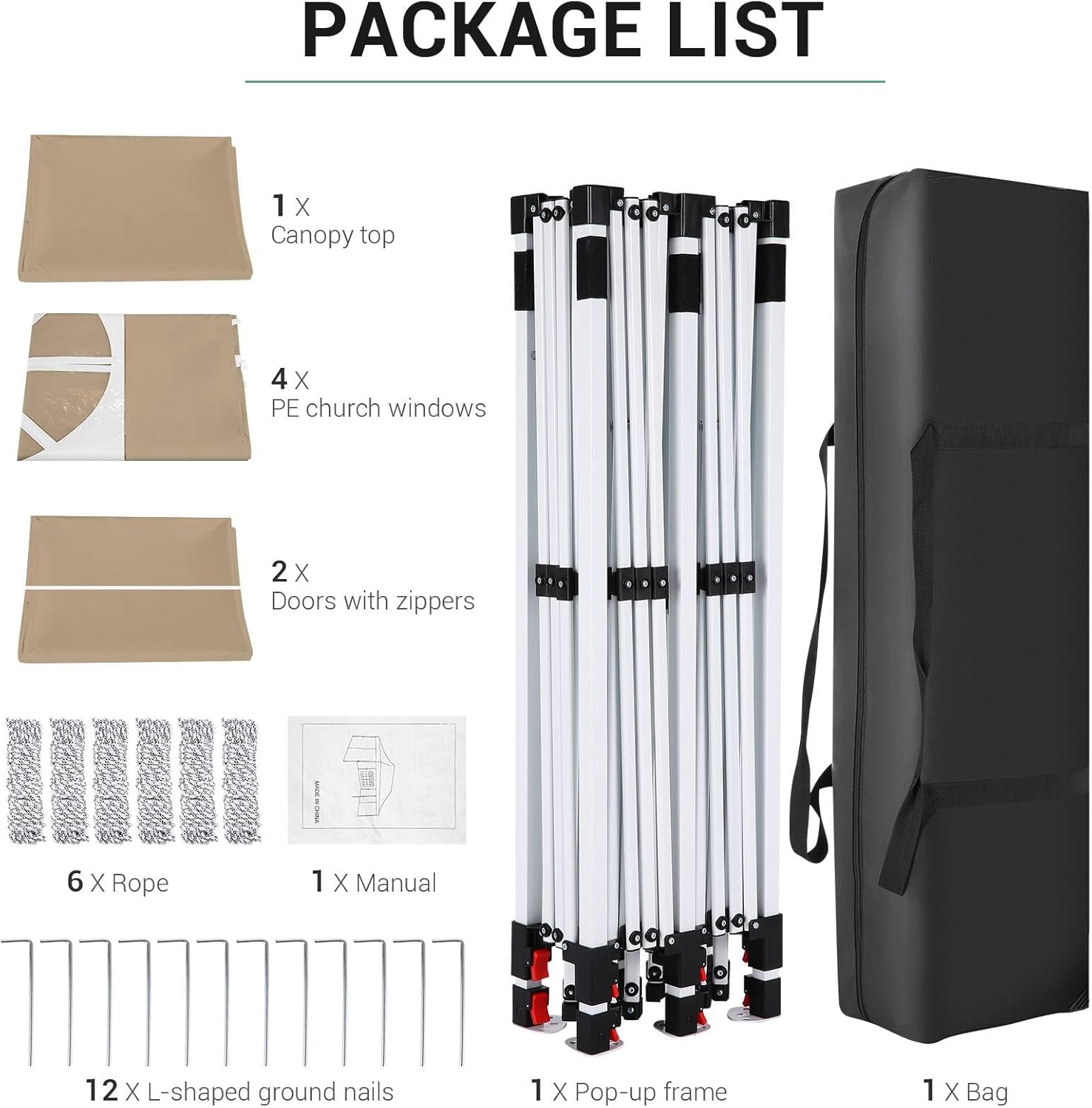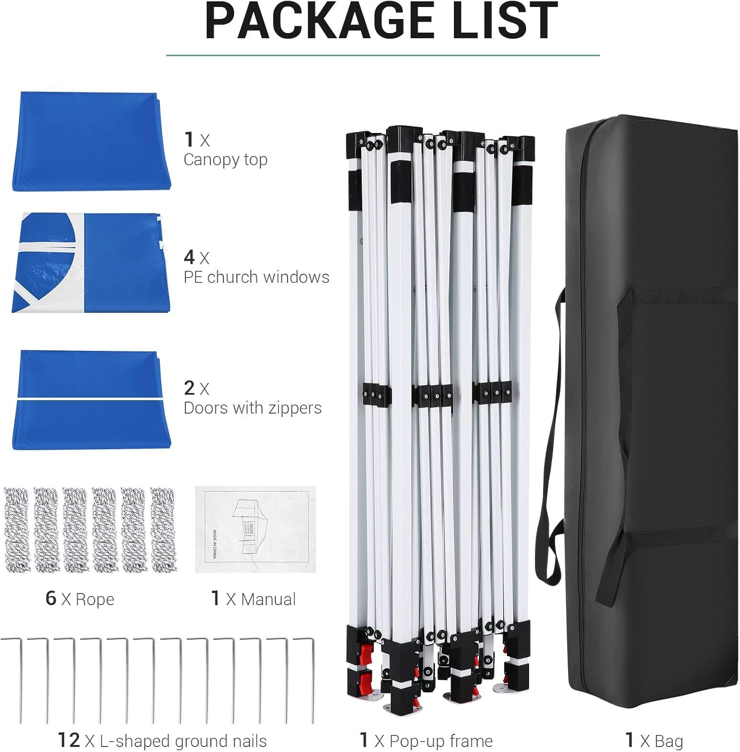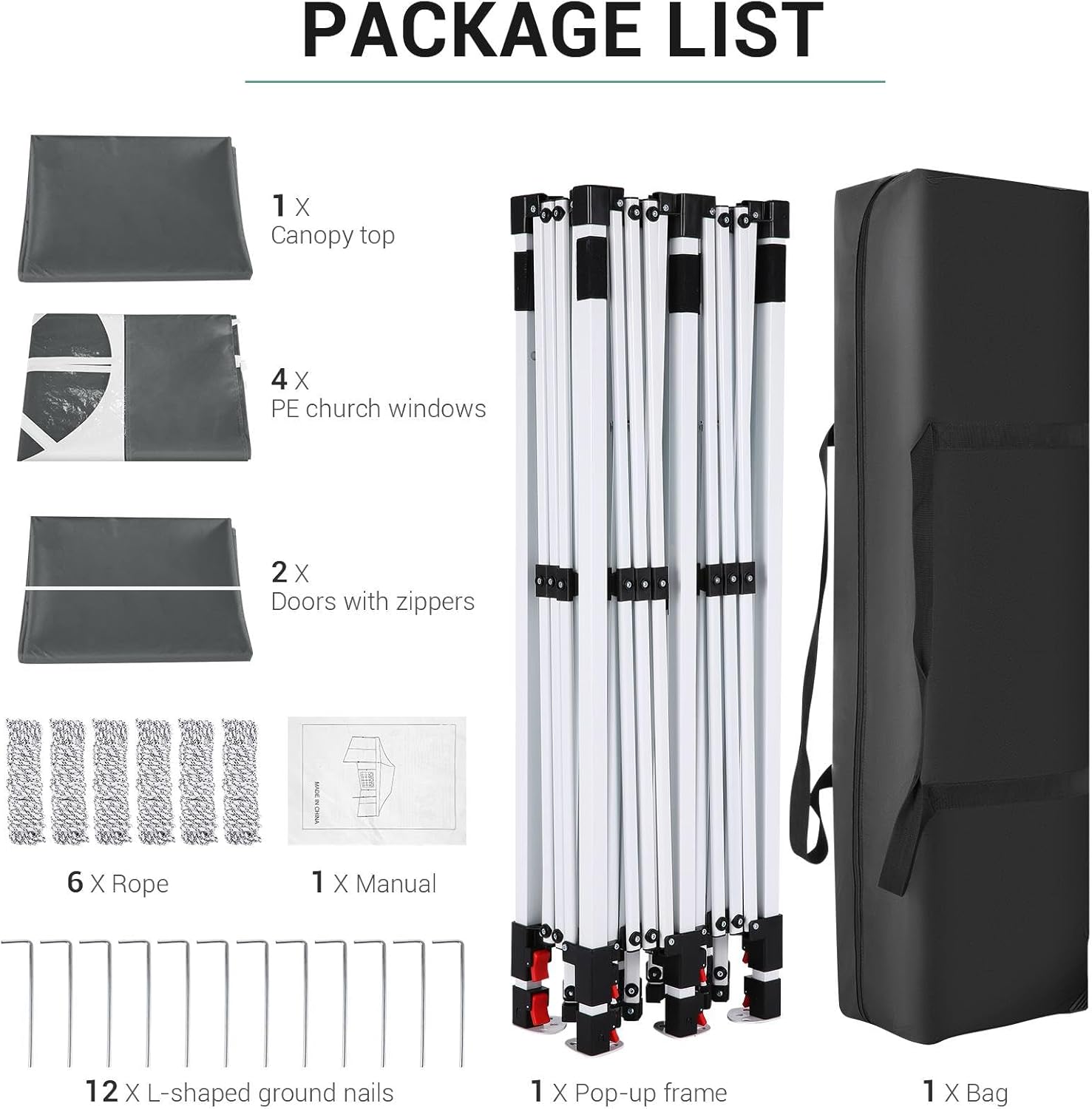 - The TOOLUCK 10x30 pop up canopy has an improved, thickened metal frame, the metal legs reach a thickness of 25x25 mm and are provided with an anti-rust coating.