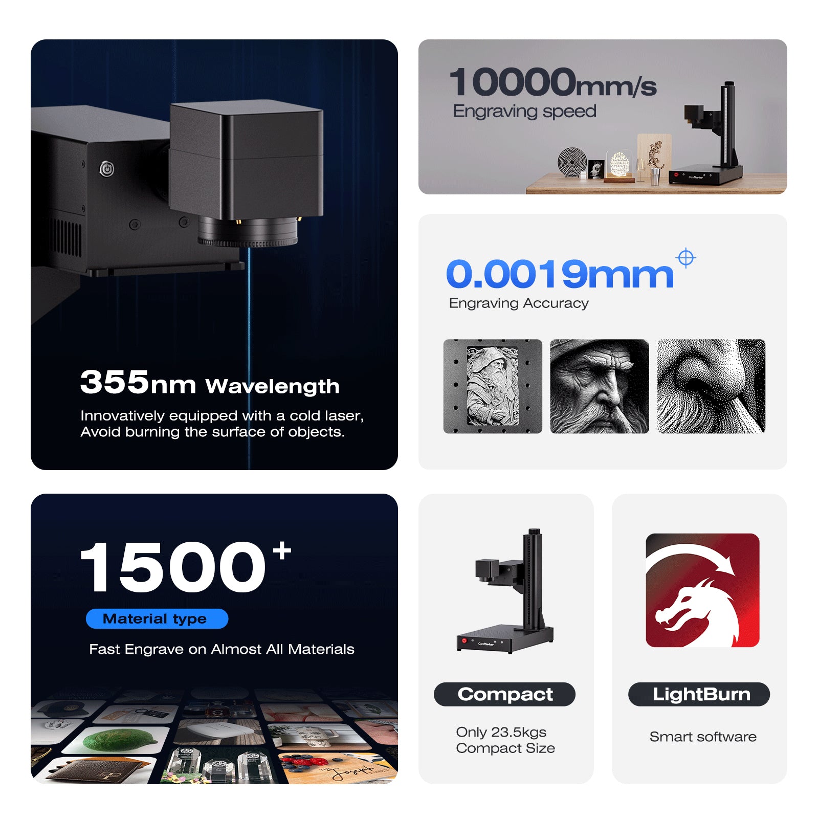 Materials Versatility: UV laser engraver can engrave and mark all materials, especially work well on glass and ceramic, offering unmatched versatility for your creative projects.
