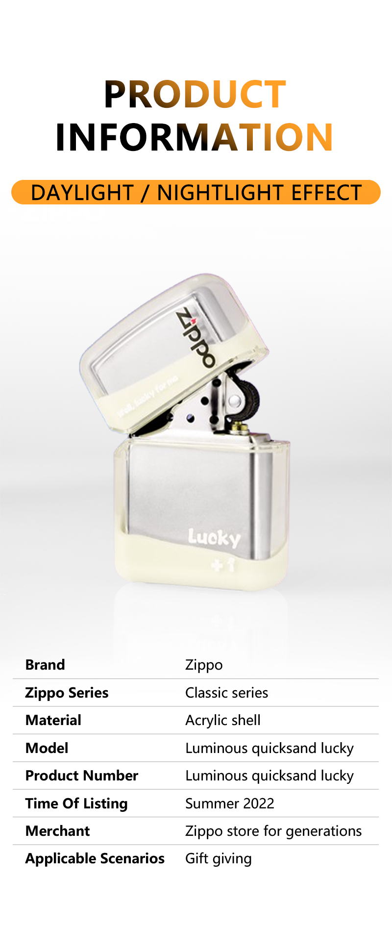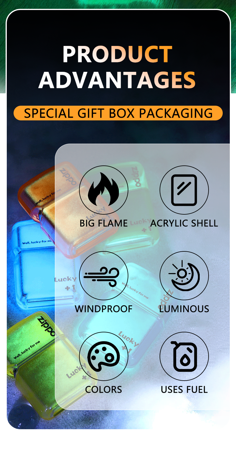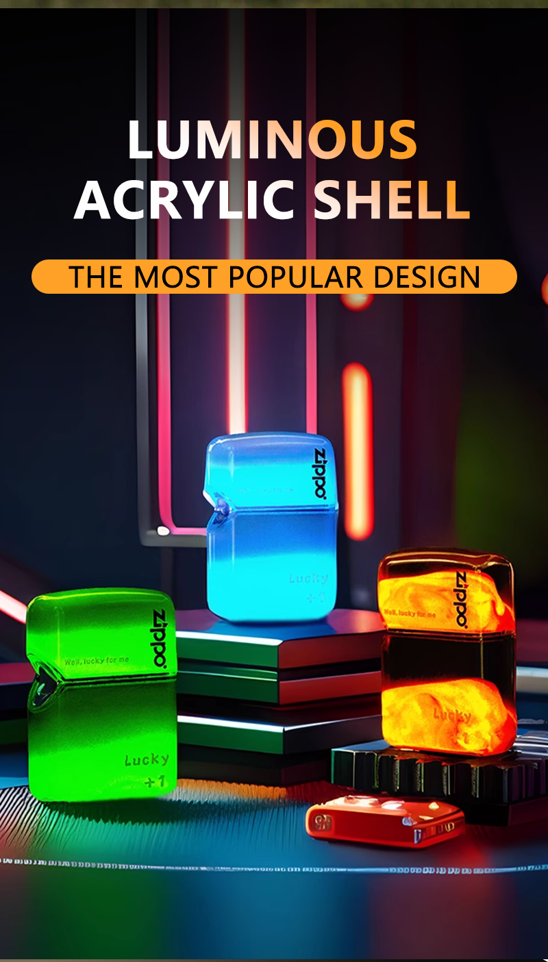 You will never lose your Zippo when you are out party again! These luminous lighters are the trendiest design now. An authentic Zippo lighter inside the luminous acrylic casing.